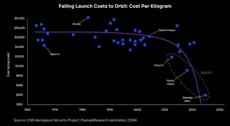One of the exponential trends that is just starting to reveal itself is the decrease in the cost to send a payload to space. For most of the history of space travel, this cost was roughly fixed. However, in recent years, mostly due to SpaceX’s use of reusable rockets, the cost to send a payload to orbit has dramatically decreased. This will have profound implications for not only the aerospace industry, but also any industry able to capitalize on this trend.
